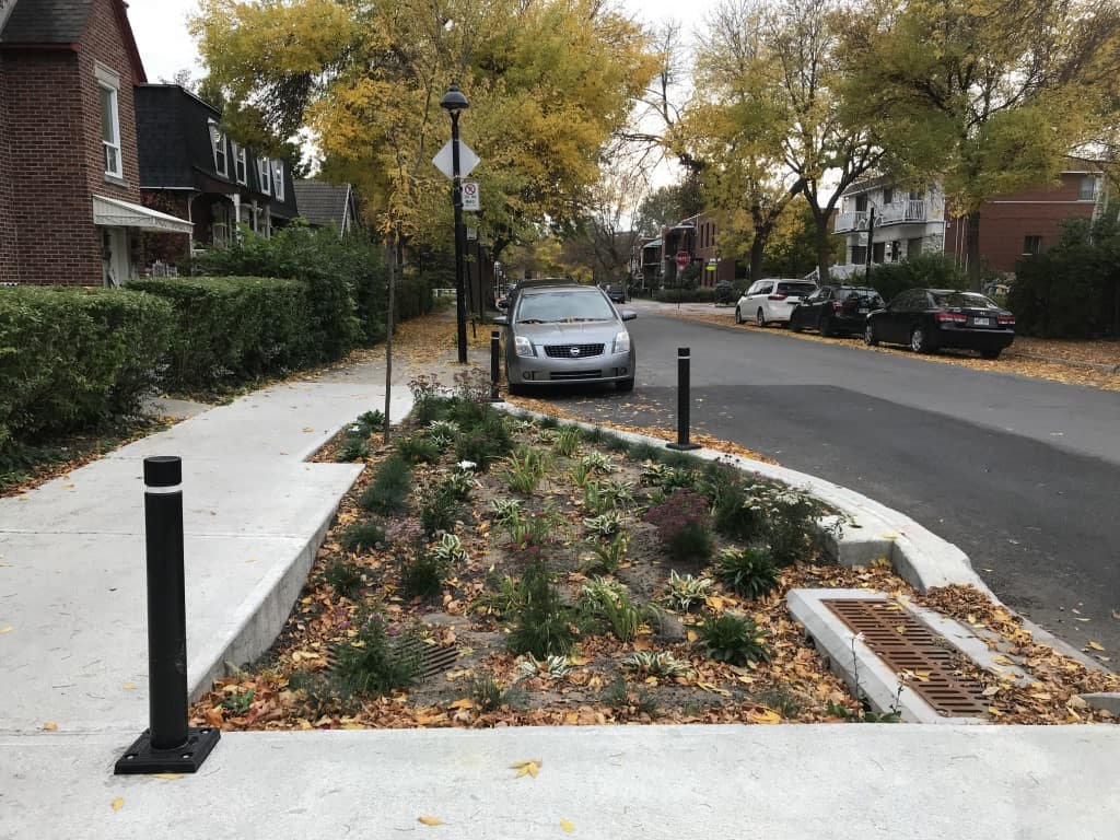Saillie végétalisée drainante, arrondissement Le Sud-OuestAu niveau municipal, deux projets sont en cours à Montréal :