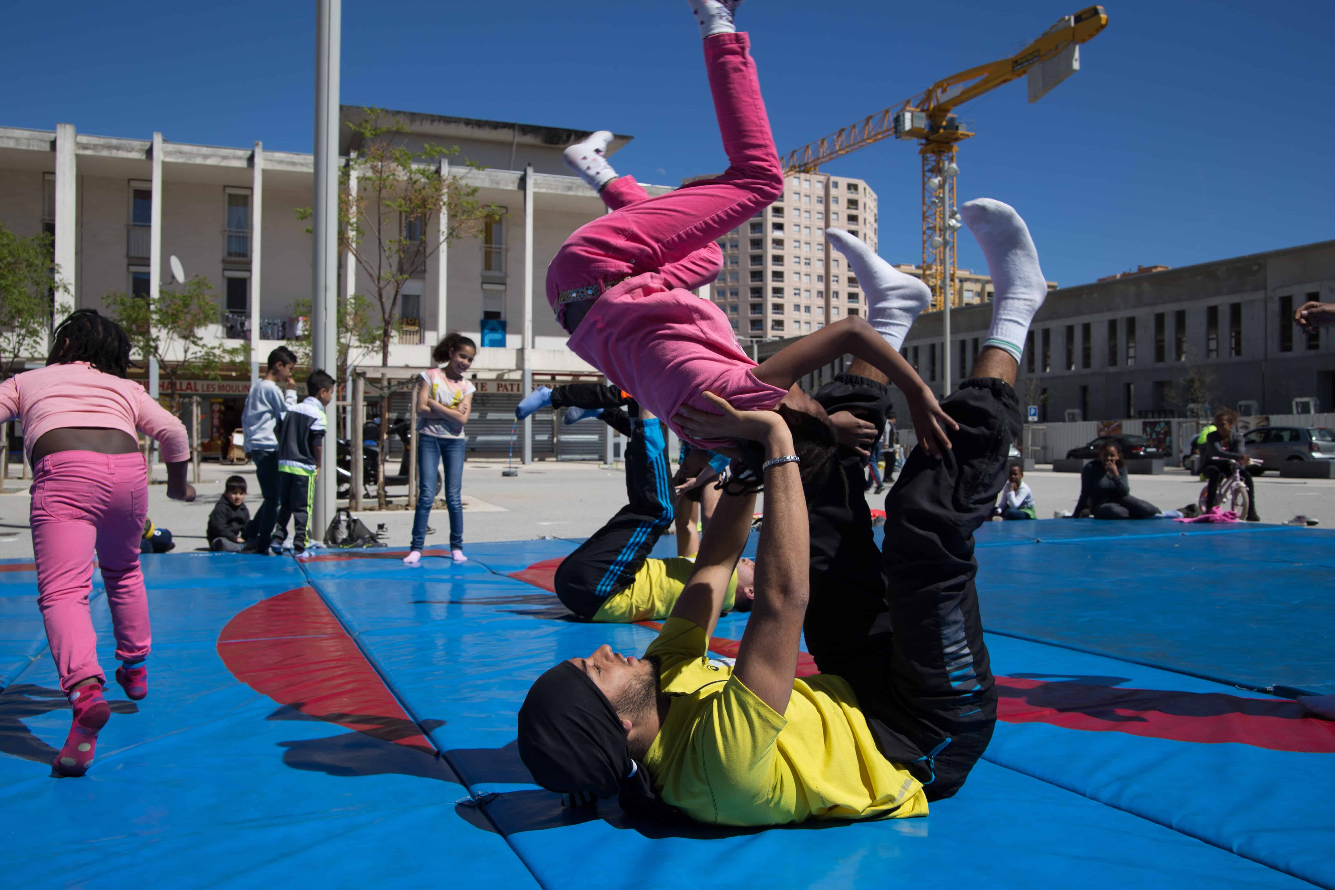 Jean-Michel Deya : On m’a demandé de trouver une façon innovante d’animer la place des Amaryllis, située dans le quartier populaire des Moulins, à Nice. Cet endroit avait été déserté par les résidents, car il était devenu un lieu de petite délinquance et de « rodéos » de scooters. Les pouvoirs publics m’ont contacté parce que je travaillais déjà dans plusieurs associations du quartier, à titre d’éducateur sportif.