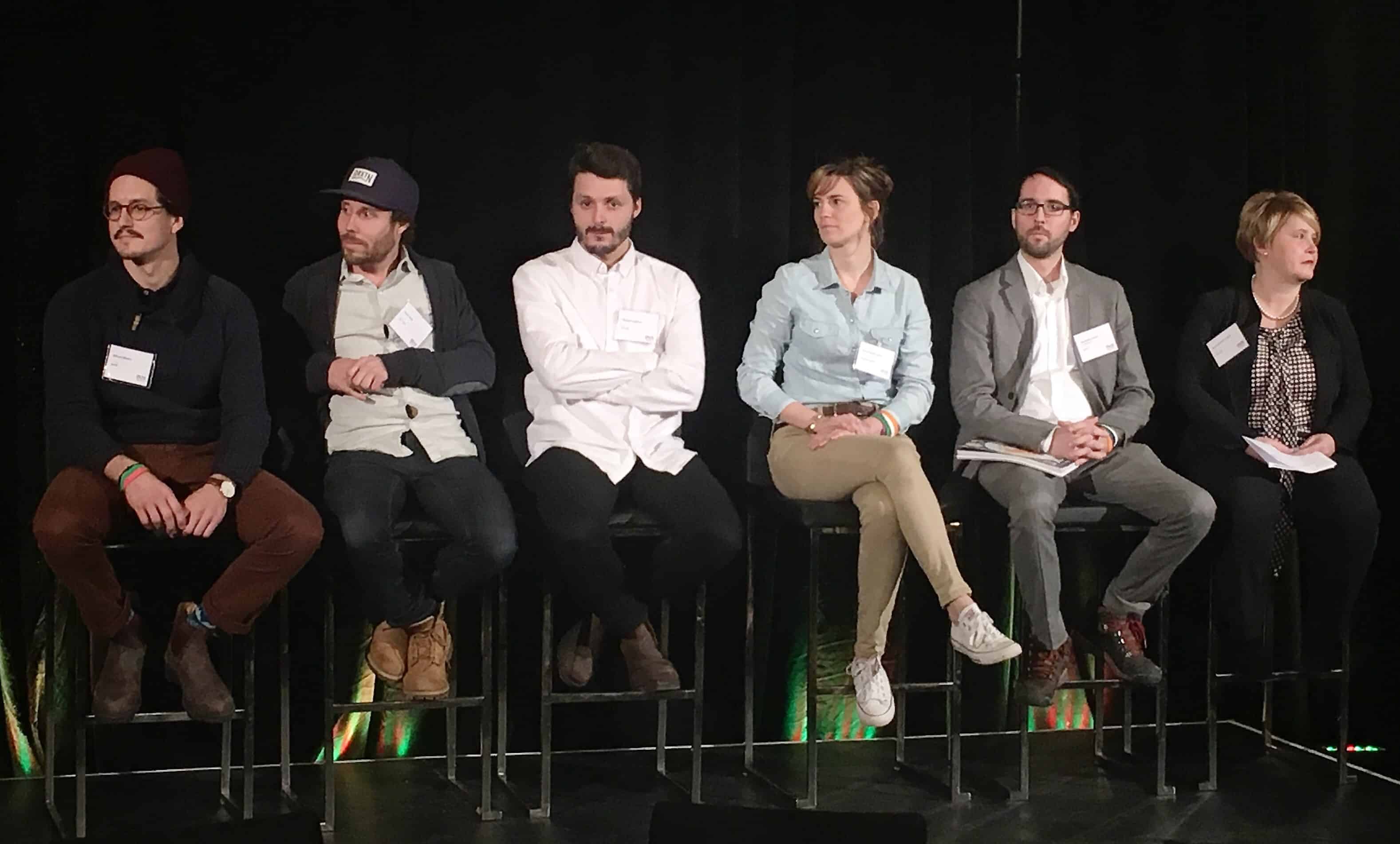 William Walker (Naak), David Côté (Jus Loop), Étienne Lapierre (Poc Poc), Marie-Soleil L’Allier (Épicerie LOCO), Alexandre Caron (Cook it) et Marie-Anick Le Bon (Markina)L’innovation alimentaire au Québec : faire partie de la solution