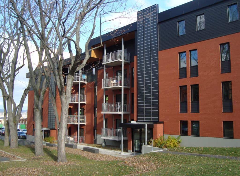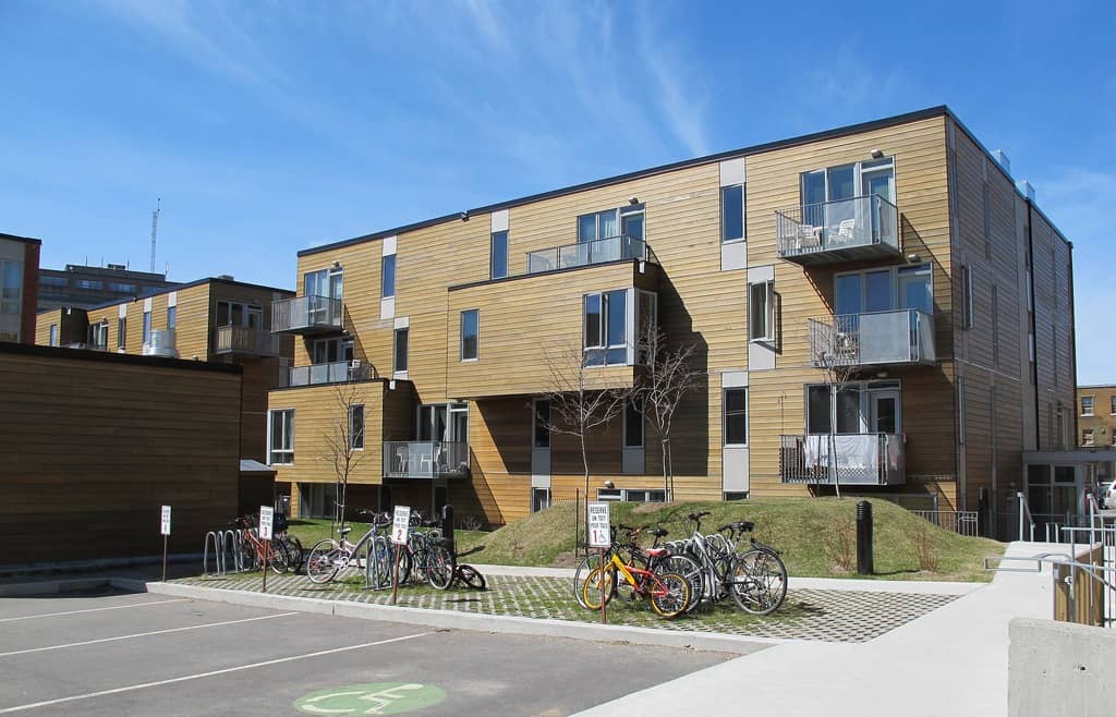 Par exemple, Anne Côté, architecte chez Lafond Côté Architectes, a mentionné le projet Pech-Sherpa (photo ci-dessus) à Québec, où l’occupation du sol a été optimisée pour répondre aux besoins des occupants, tout en maximisant les espaces verts.