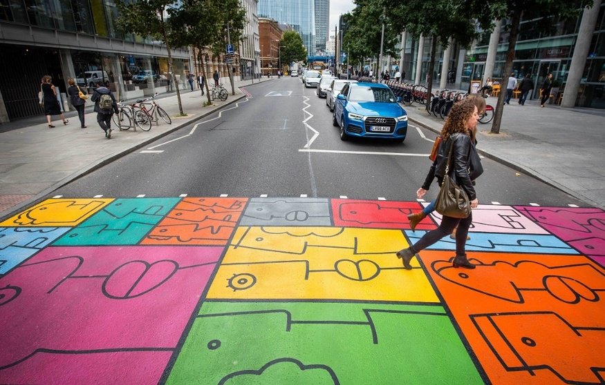 Même quand la signalisation en indique la présence, il est avantageux de rendre les passages piétonniers les plus visibles possible, notamment par du marquage au sol. Il s’agit d’une intervention peu coûteuse, bien qu’elle doive être répétée en raison des outrages du temps. À cet égard, elles peuvent devenir l’occasion pour des artistes locaux, d’exprimer leur créativité et, pour la communauté, d’éprouver un sentiment d’appartenance renforcé envers son quartier.