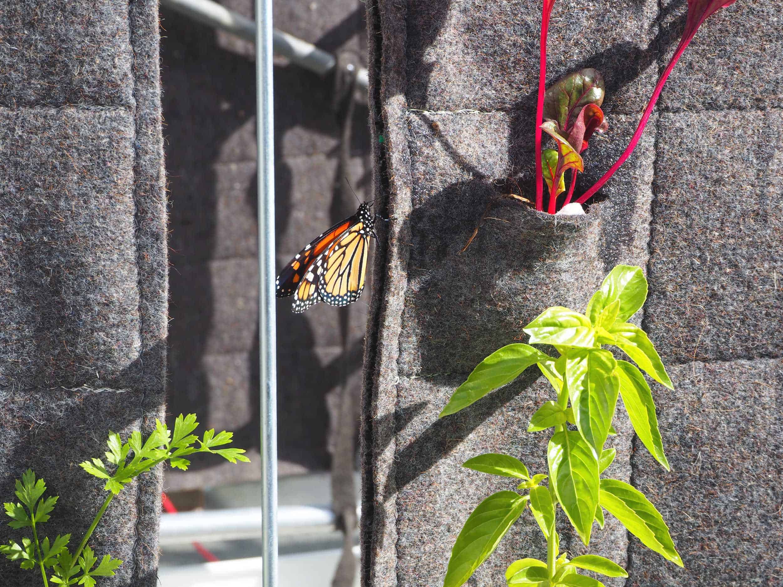 Unique en son genre, VERTical est un projet d’agriculture urbaine sur échafaudage. Il occupe environ 550 m2 au sol et 450 m2 à la verticale. Développé en collaboration avec AU/LAB, ce projet repose sur l’utilisation de membranes « vivantes », faites de laine feutrée, dans lesquelles sont aménagées des pochettes. Et c’est dans ces pochettes que croissent les plantes nourries par un système d’irrigation s’écoulant par le haut.