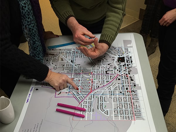 « Le partenariat Réseau Quartiers verts cherche à découvrir comment les décideurs, les professionnels de l’aménagement, les groupes communautaires et les citoyens peuvent travailler ensemble à l’élaboration de plans et de solutions qui favorisent les transports actifs et la participation active des citoyens dans les quartiers. »
