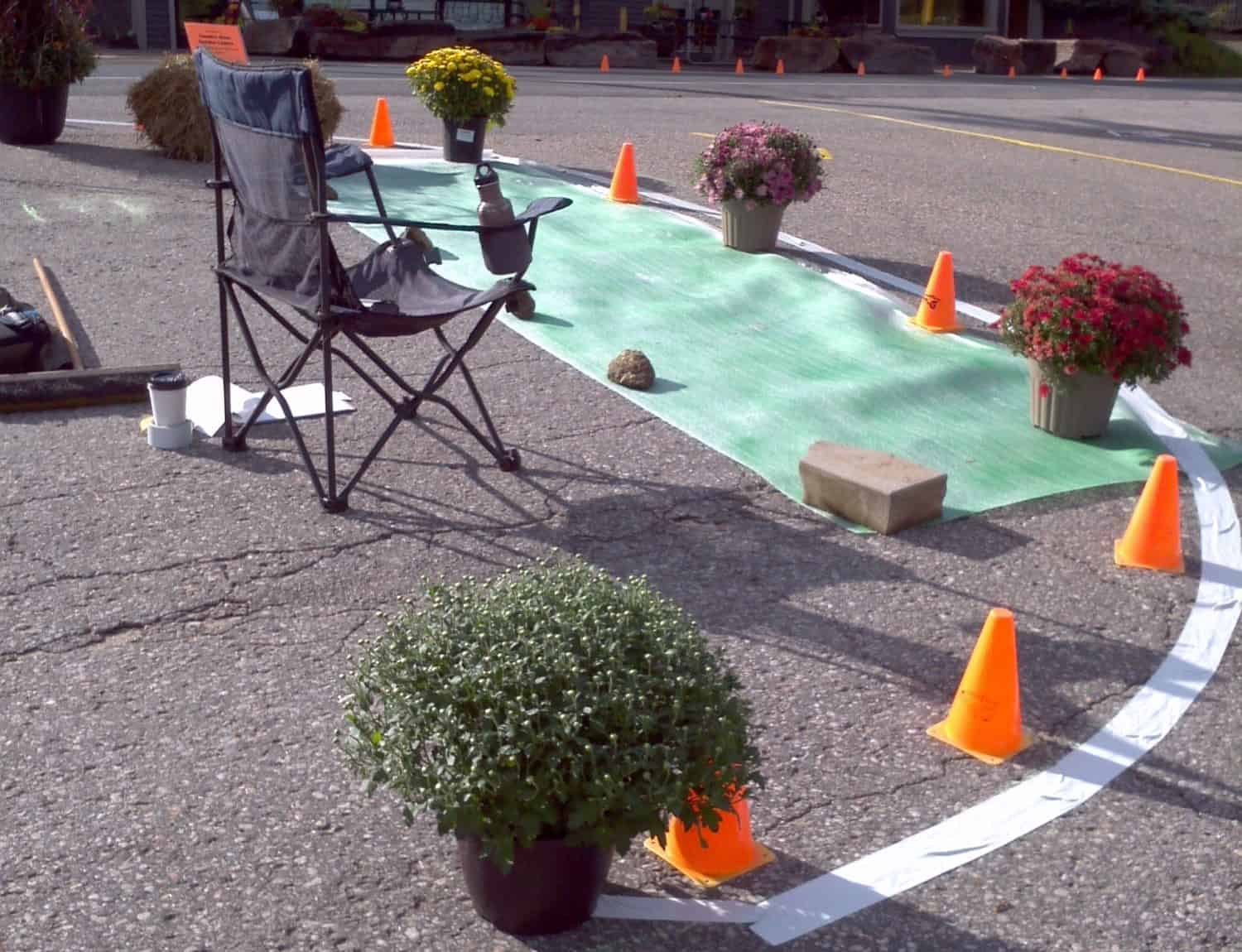 Une « rue complète » dans une municipalité rurale de l’Ontario. La « rue complète » est un concept typiquement urbain, mais l’organisme Communities in Action (CIA) de Haliburton a choisi de l’appliquer en milieu rural, sur une route de comté. Comme les routes de comté sont des espaces intergouvernementaux, le Toronto Centre for Active Transportation, le partenaire ontarien du Réseau Quartiers verts, a travaillé avec les professionnels des deux paliers de gouvernement. Cette concertation a permis de concevoir et de tester temporairement des mesures d’apaisement de la circulation.