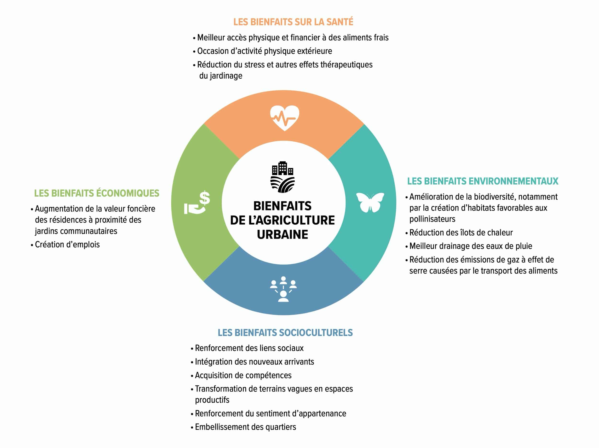 - L’expansion de l’agriculture urbaine commerciale, notamment celui de la ville elle-même en plus de l’aide apporté aux entrepreneurs agricoles urbains