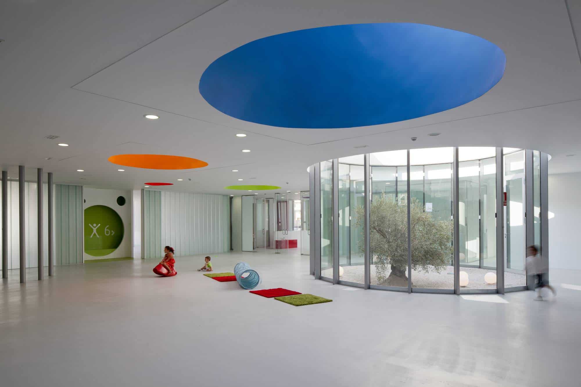 Selon Pierre Thibault, le design intérieur des bâtiments est aussi à repenser en profondeur, car il confine les enfants plutôt que de leur permettre de circuler activement dans l’école. Il cite en exemple le cas de l’école Fuji à Tokyo, où les locaux ne sont pas séparés par des murs, mais par du mobilier.