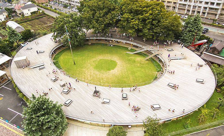 Toit et cour intérieure de l’école Fuji à Tokyo (photo : Takaharu Tezuka)