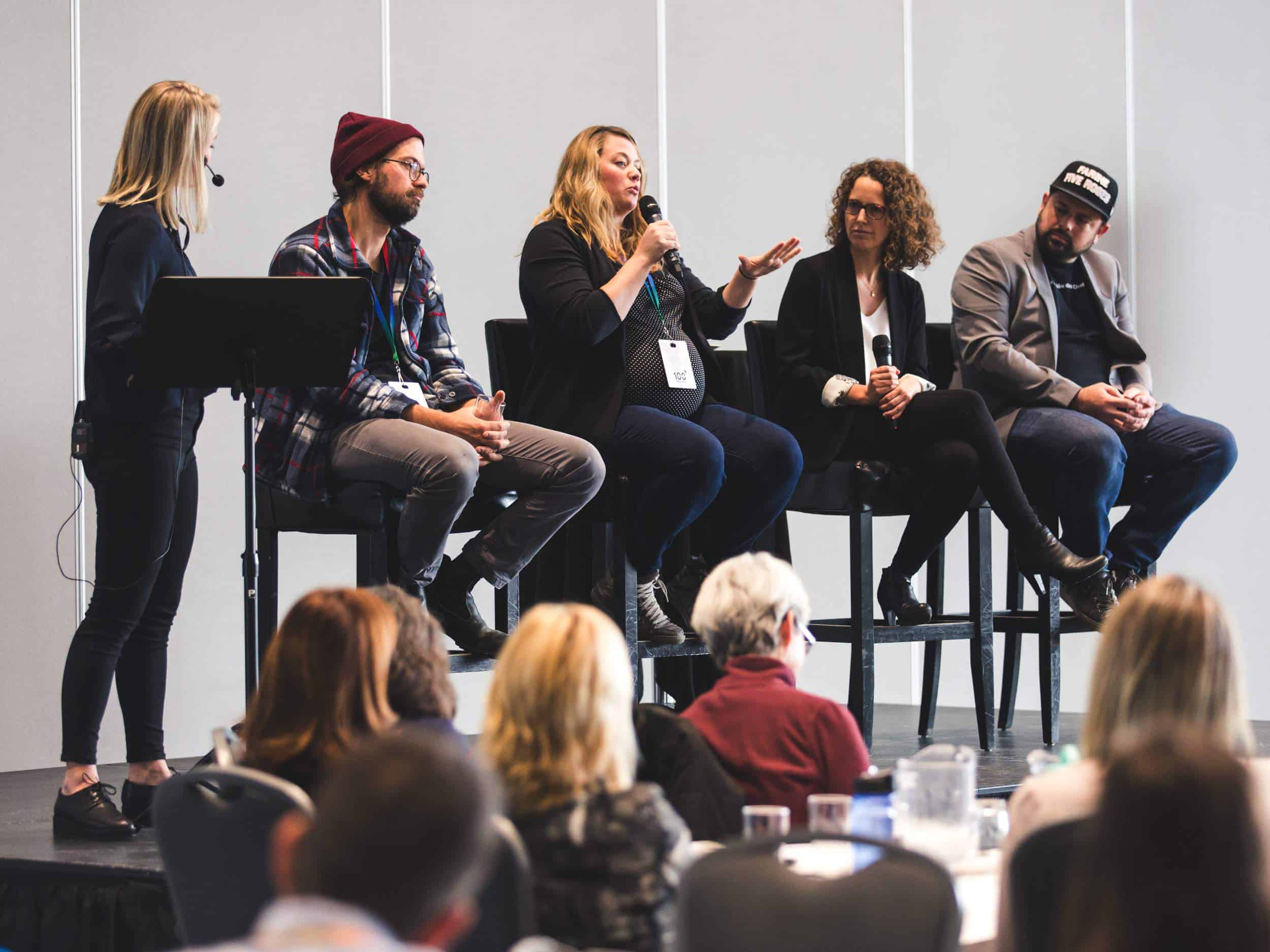 En début d’après-midi, Marie-Claude Perron animait un panel composé de quatre leaders de changement : Jean-François Archambault, directeur général et fondateur de La Tablée des chefs; Véronique Carbonneau, directrice philanthropique à l’école Lucien-Guilbault; Claudine Labelle, présidente fondatrice de Fillactive; Jean-Philippe Vermette, directeur conseiller stratégique au Marché Frontenac.