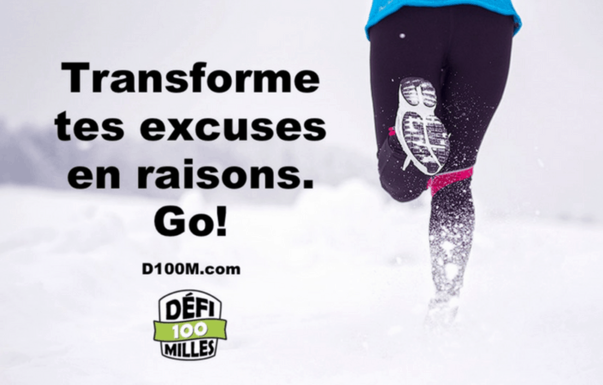 En Abitibi-Témiscamingue, la 8e édition du Défi 100 miles en 100 jours a commencé le 1er décembre et se terminera le 10 mars. Il consiste à bouger dehors (et à l’intérieur) pendant les 100 jours les plus froids de l’année, à raison de 1,6 km ou 20 minutes d’activité physique par jour. Une partie des frais d’inscription est versée à des organismes de bienfaisance. Les participants peuvent échanger sur une page Facebook fermée. Ce défi attire des gens de partout au Québec.