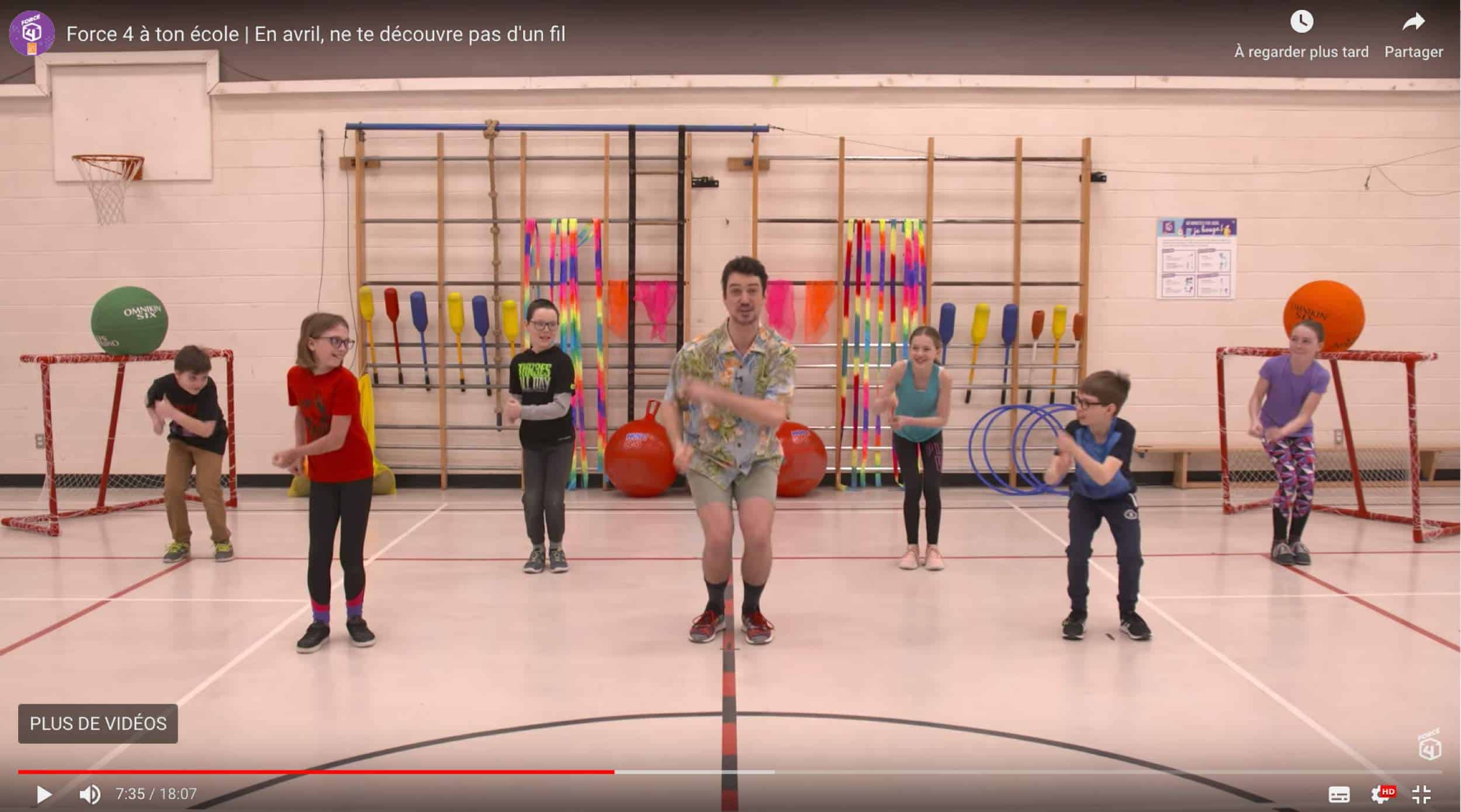 En février dernier, le ministre de l’Éducation annonçait l’instauration de deux récréations obligatoires d’au moins 20 minutes chacune, le matin et l’après-midi, et ce, dès la rentrée d’automne. C’est une importante étape vers l’atteinte des 60 minutes d’activités physiques recommandées en une journée. Et les capsules vidéo Force 4 sont justement là pour aider les enseignants à faire bouger leurs élèves en classe pendant une petite vingtaine de minutes supplémentaires.