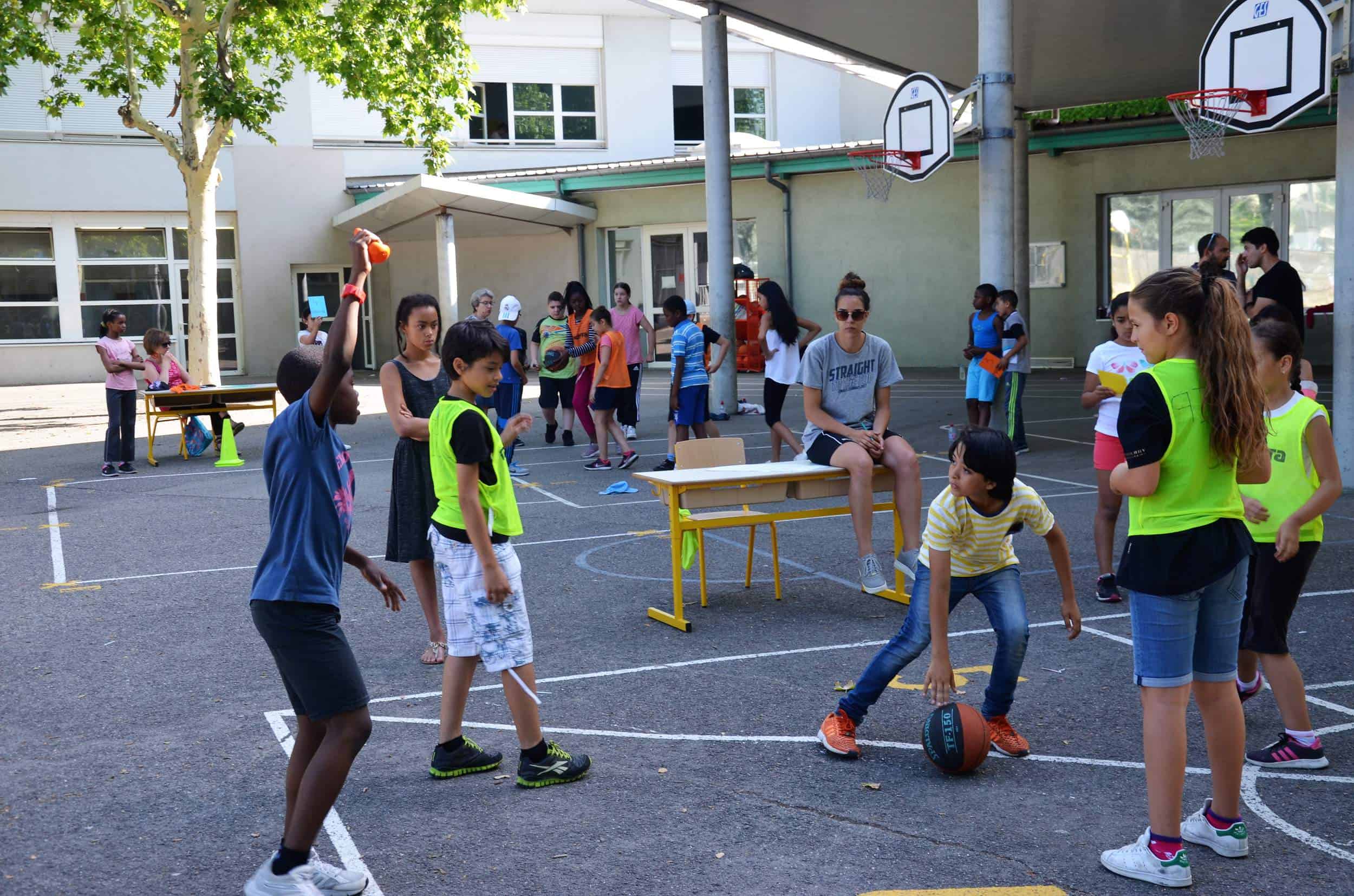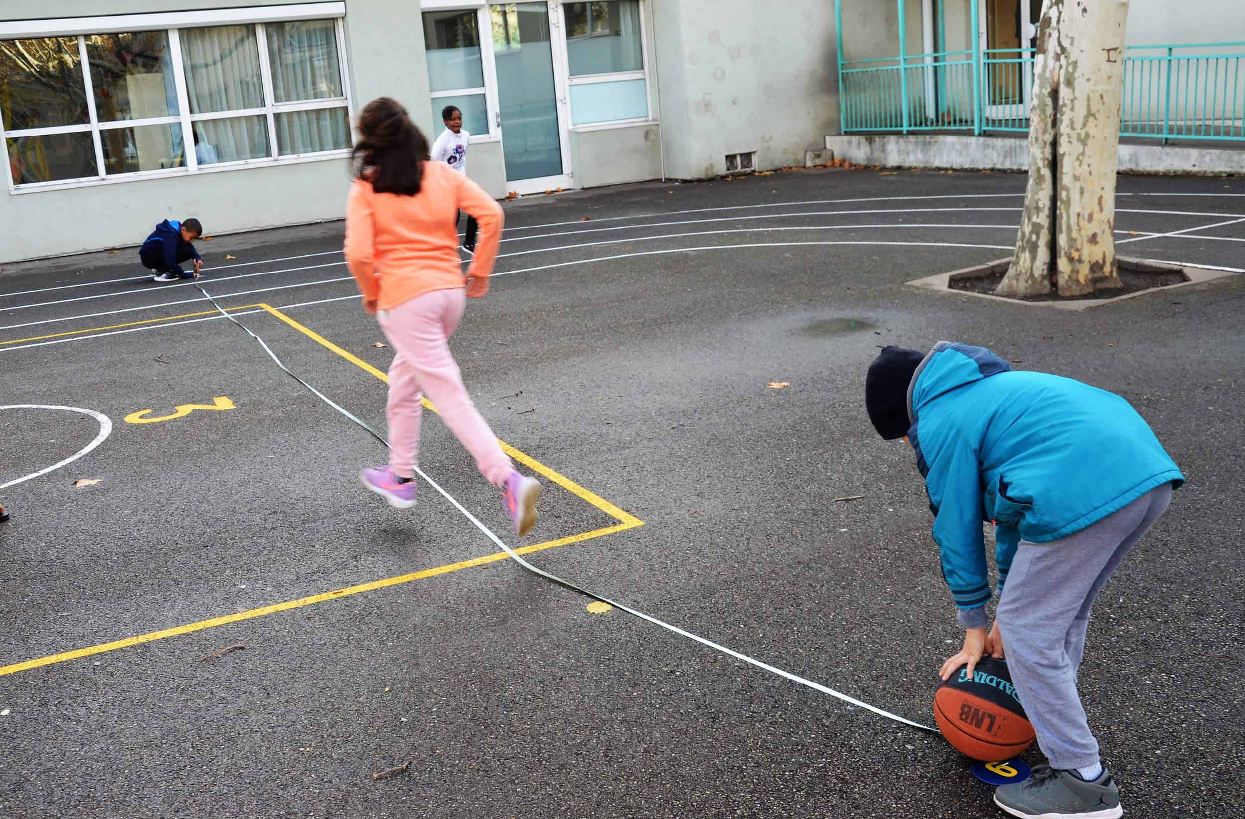 Mesure de la longueur d'une passe de basket dans la cour d'école« Les matières scolaires comme les mathématiques peuvent également être abordées, souligne Mathias Belmer. Par exemple, l’apprentissage du calcul de la vitesse peut reposer sur des courses chronométrées effectuées la semaine précédente. Raconter les jeux actifs auxquels ils ont participé permet aux jeunes d’apprivoiser l’expression écrite et orale. »