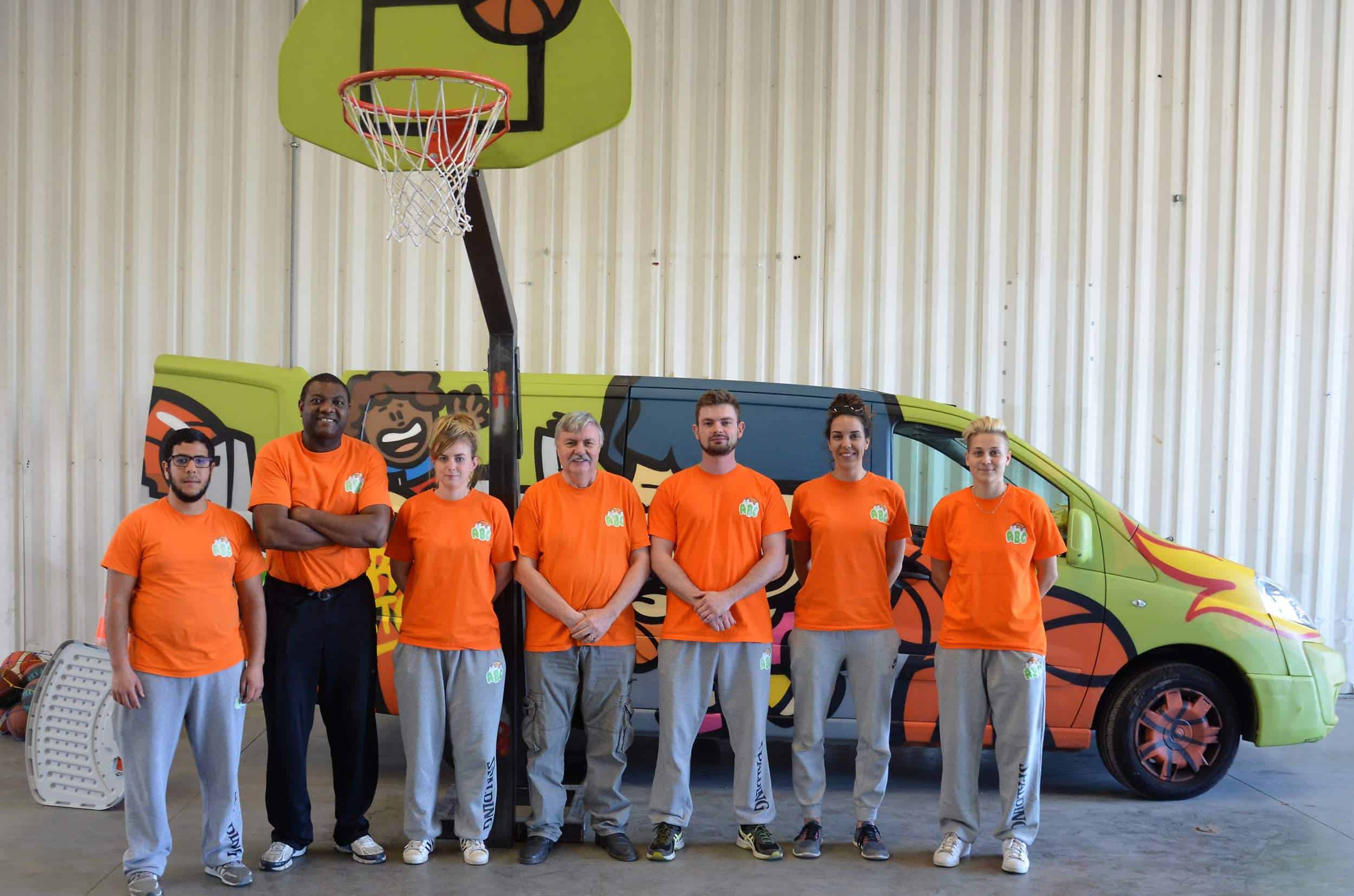 Équipe 2018 d'Action Basket Citoyen. Au centre, Jean et Mathias Belmer au centreDes projets plein les bras et plein la tête