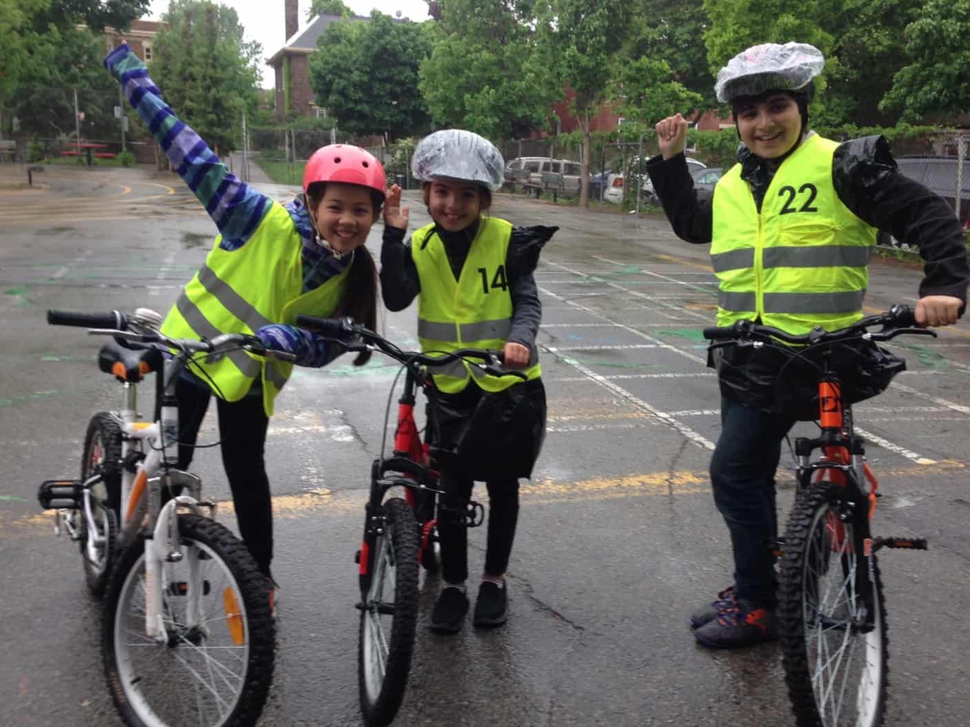 Ce printemps, la météo a mis à rude épreuve les participants du programme autant que ses responsables. Ainsi, certains élèves ont dû faire leur examen avec un sac poubelle sur le dos et un bonnet de douche sur leur casque. « À l’école Perce-Neige, de Pierrefonds, où nous avions 10 classes, raconte Magali Bebronne, chargée du projet chez Vélo Québec. Nous avons dû refaire le parcours de sortie sur route parce que des tronçons de rue étaient fermés en raison des inondations. »