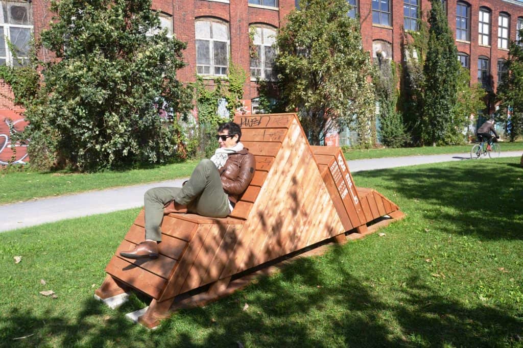 L’installation de ce module par un groupe de citoyens aux abords d’une piste multifonctionnelle constitue un arrêt obligé pour tout bambin pratiquant l’escalade. Arrondissement de Rosemont — La Petite-Patrie. Crédit photo: CEUM5— Assurer une densité à échelle humaine.