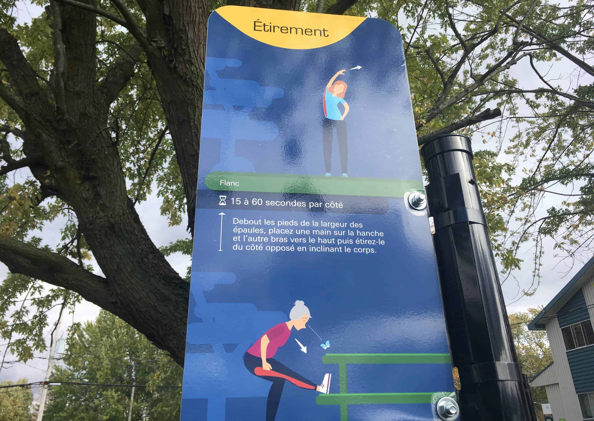 Ce projet a permis à chaque municipalité d’aménager un parcours actif équipé d’un panneau explicatif et de 10 panneaux d’exercice. Quelques-unes ont même choisi de créer plus d’un parcours en achetant une série supplémentaire de panneaux afin de profiter d’une économie d’échelle considérable.