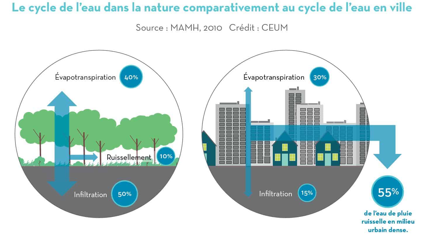 Pour prévenir ou réduire les débordements polluants et coûteux en milieu urbain, des villes d’Europe, d’Australie et des États-Unis ont mis en place des pratiques de gestion durable des eaux pluviales.