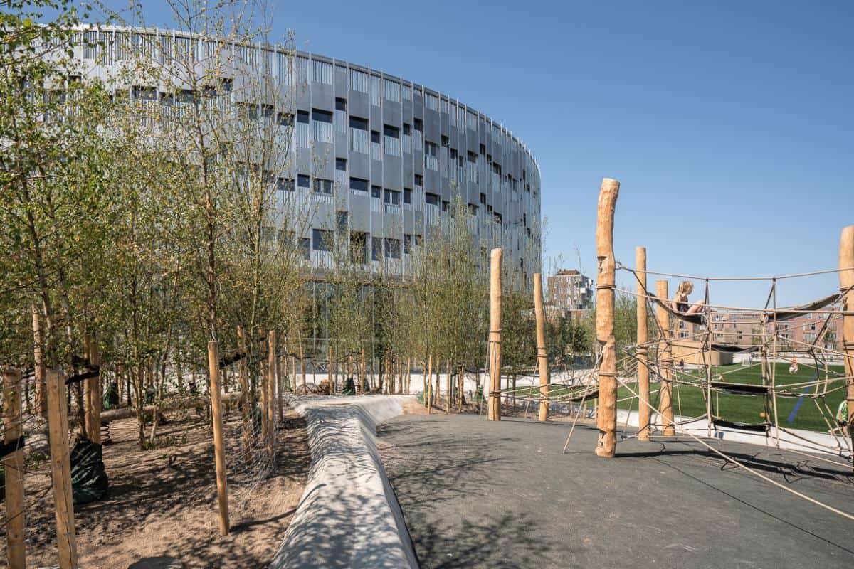 Située à 20 minutes à vélo du centre-ville – c’est ainsi que l’on mesure les distances à Copenhague – la toute nouvelle école Kalvebod Fælled incarne pleinement les valeurs mises de l’avant par la récente réforme de l’éducation au Danemark. Construite dans un parc, elle offre aux élèves la possibilité de jouer librement dans la nature, d’autant mieux qu’elle n’est pas ceinturée par des clôtures. Ses aménagements intérieurs sont conçus pour que les élèves aient toutes les occasions de bouger, et même de suivre certains cours à l’extérieur des salles de classe. De conception multifonctionnelle, le bâtiment est accessible aux membres de la communauté en dehors des heures de classe. Les habitants du quartier ont ainsi le loisir d’utiliser la cafétéria, le gymnase, la bibliothèque et les salles de réunion. Placée au cœur de son milieu de vie, cette école, créée avant tout pour le bien-être des enfants, a donc aussi pour vocation d’être un centre communautaire et donc de contribuer à resserrer les liens sociaux.