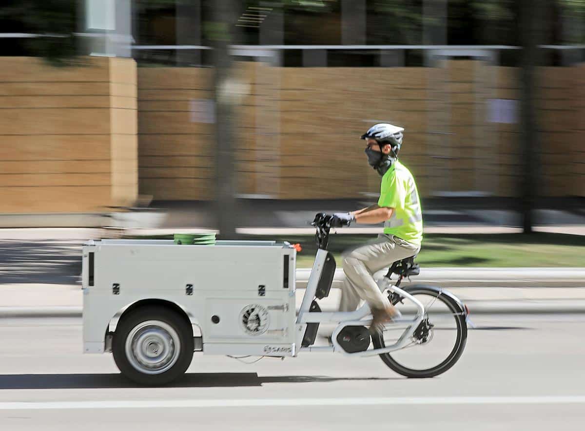 Après la ville de Madison, au Wisconsin, c’est au tour de Portland, en Oregon, d’être le théâtre d’un projet pilote déployé par l’entreprise Saris Infrastructure. Durant les prochains mois, certains employés de la ville vont piloter des vélos cargos à assistance électrique spécialement conçus pour permettre d’accomplir des tâches courantes en milieu urbain. Doté de trois roues, le caisson de transport, placé à l’avant, repose littéralement sur des pneus de petites voitures. Il peut donc accueillir des charges considérables que son utilisateur pourra aisément déplacer grâce à une batterie qui peut fournir 500 watts de puissance. Les expériences menées à Madison ont permis de confirmer la grande stabilité de ces « trikes » de même que leur bonne maniabilité, peu importe les aptitudes des employés. Selon Saris Infrastructure, les « trikes » représentent une option de choix pour toutes les villes qui se sont engagées à réduire les émissions de gaz à effet de serre produites par leurs flottes de véhicules. Un dossier à suivre…
